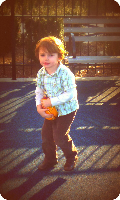 Anyway, Eamon and Nora could not be happier about spending time at the park. Especially Nora, who is now big enough to explore the playground on her own, climb up to the slide, walk around, etc. And, of course, park time=a chance for Eamon to indulge in his obsession with football. Not sure what we're going to do after the Super Bowl this weekend since he has been so focused on the sport since August (as you probably know, he memorized NFL match-ups week to week and could instantly recall who was playing whom...and acted out the plays in our living room as he watched the games.). Though, now he has learned all of the NBA teams and can recognize them by logo/jersey, so I guess the obsession can transition to basketball!